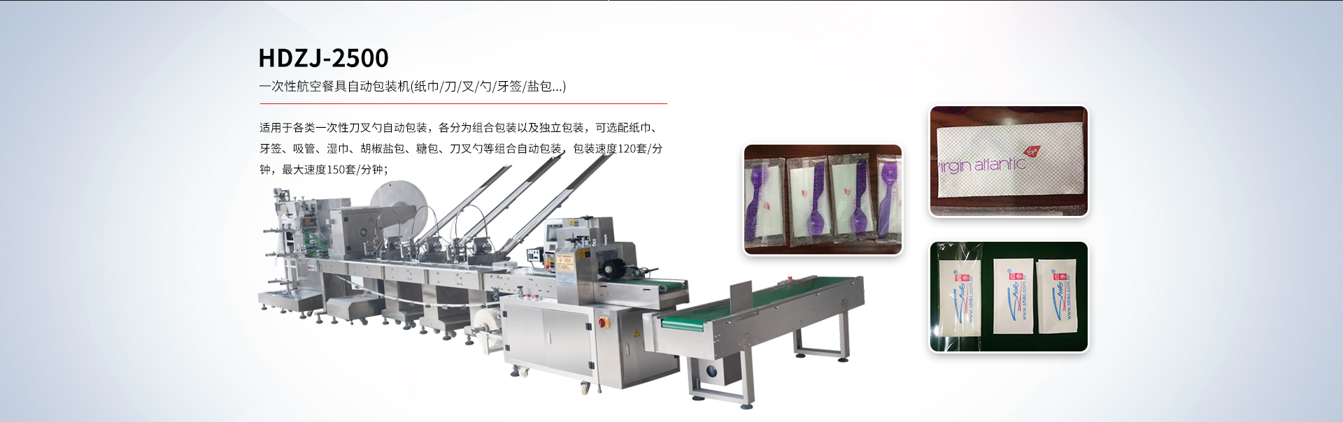 • HDZJ-2500 一次性航空餐具自動包裝機(紙巾/刀/叉/勺/牙簽/鹽包...)